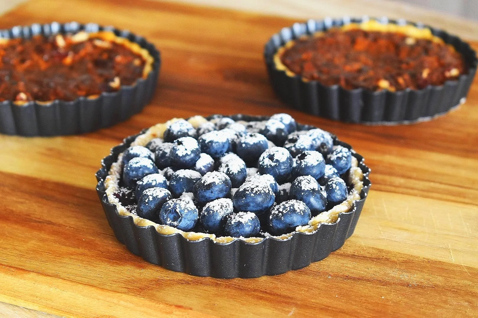Mix all the ingredients in a bowl except the 1/4 cup blueberries. Pour the berry mixture into the dough base.