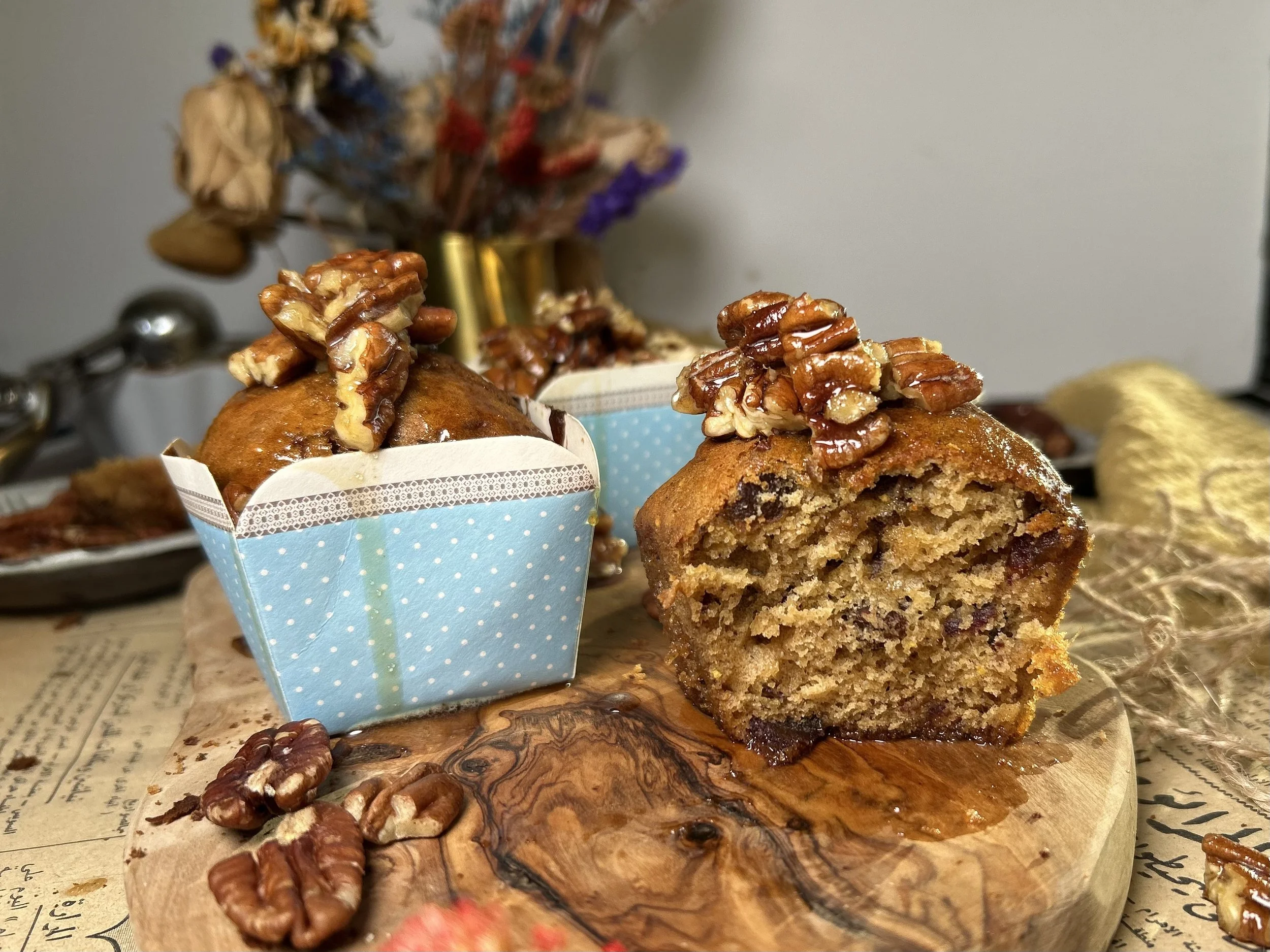 Date Cupcakes Topped with Pecan Frosting